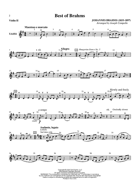 Digital Sheet Music for The Best Of Brahms - Violin 2 by Johannes Brahms, Joseph Compello scored for Orchestra; id:406868