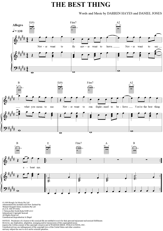 Digital Sheet Music for The Best Thing by Darren Hayes, Daniel Jones, Savage Garden scored for Piano/Vocal/Chords; id:241861