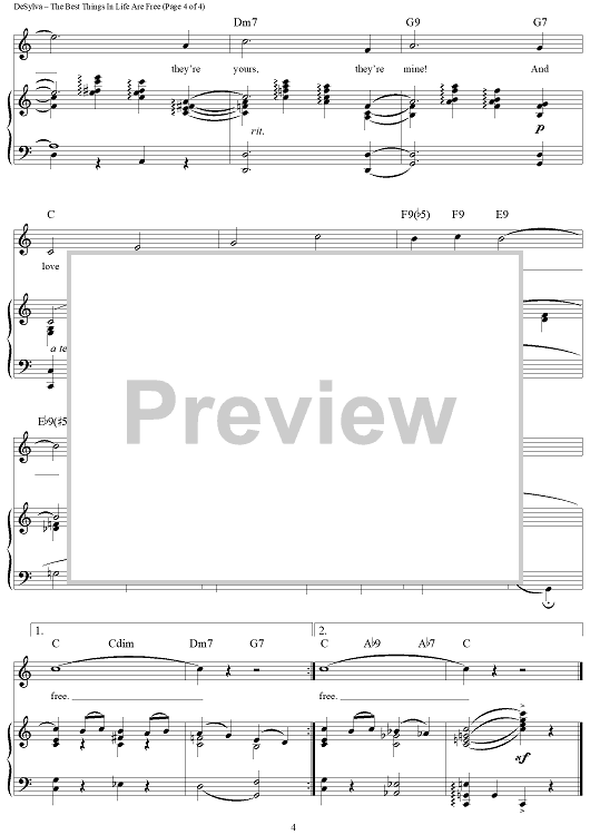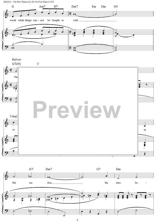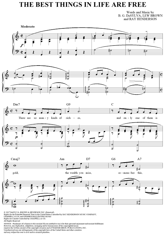 Digital Sheet Music for The Best Things in Life Are Free by Ray Henderson, Lew Brown, Buddy DeSylva scored for Piano/Vocal/Chords; id:125736