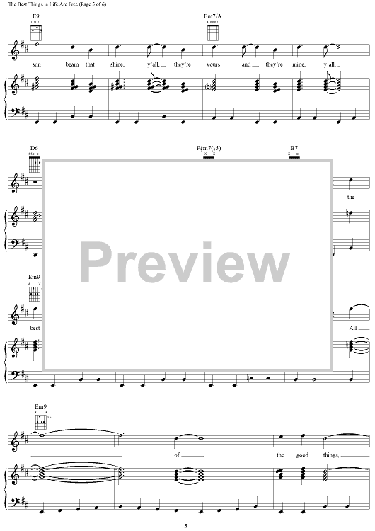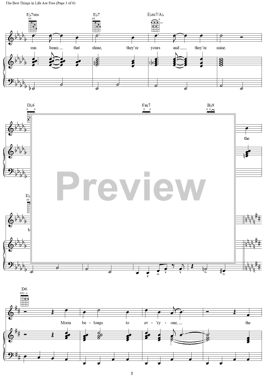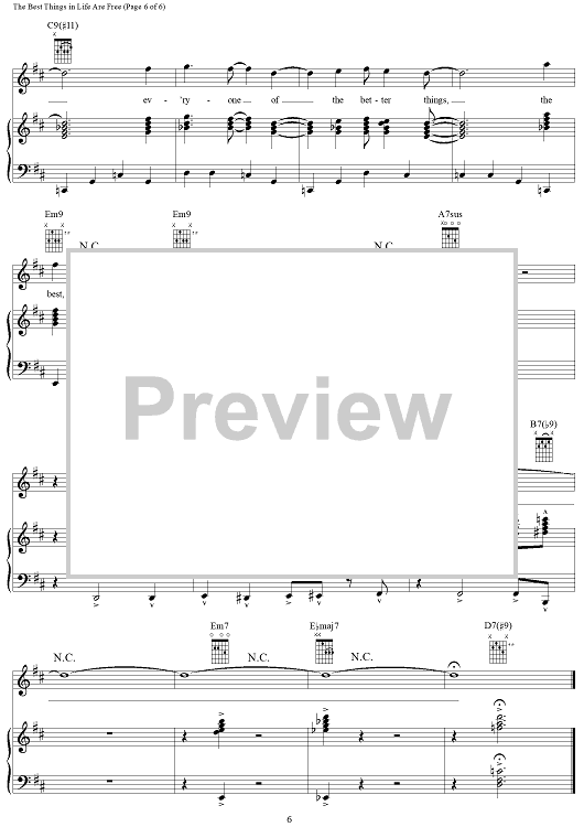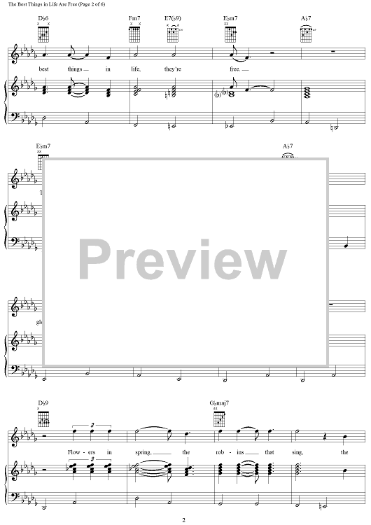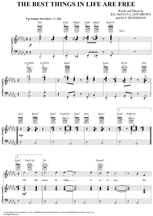 Digital Sheet Music for The Best Things in Life Are Free by Ray Henderson, Lew Brown, Sam Cooke, Buddy DeSylva scored for Piano/Vocal/Chords; id:304385