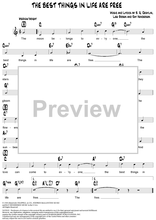 Digital Sheet Music for The Best Things in Life are Free by Ray Henderson, Lew Brown, Buddy DeSylva scored for Lead Sheet; id:315444