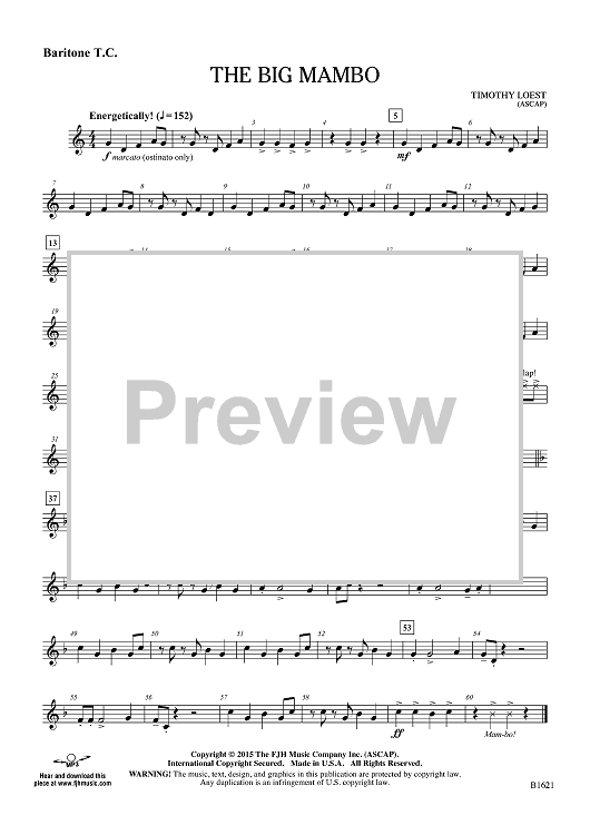Digital Sheet Music for The Big Mambo - Baritone TC by Timothy Loest scored for Concert Band; id:454642