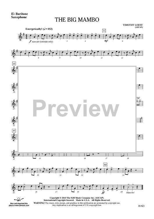 "The Big Mambo - Eb Baritone Sax" Sheet Music by Timothy Loest