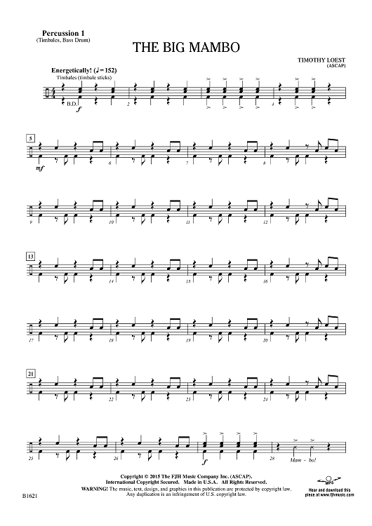 Digital Sheet Music for The Big Mambo - Percussion 1 by Timothy Loest scored for Concert Band; id:454645
