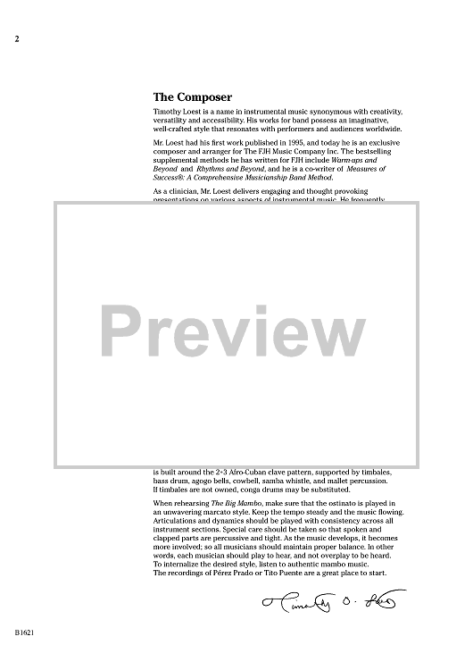 "The Big Mambo - Score" Sheet Music by Timothy Loest