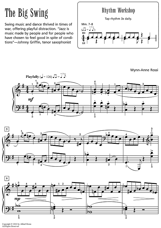 Digital Sheet Music for The Big Swing by Wynn-Anne Rossi scored for Piano; id:469553