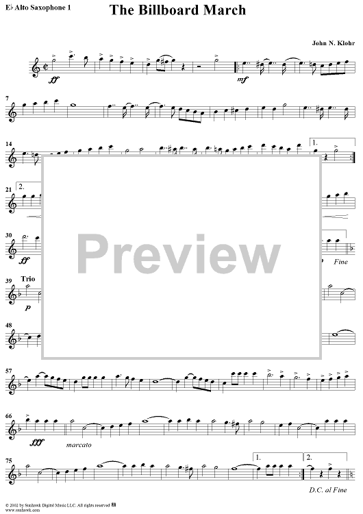 "The Billboard March - Alto Saxophone 1" Sheet Music by John N. Klohr