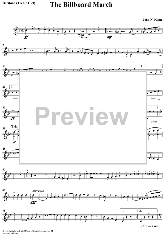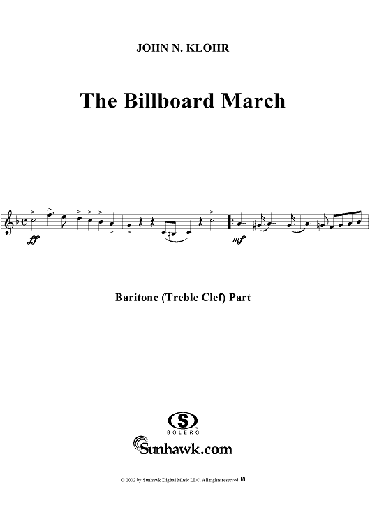 "The Billboard March - Baritone Horn-Treble Clef" Sheet Music by John N. Klohr