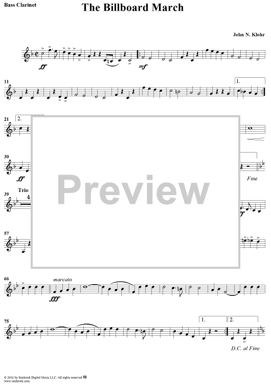 Digital Sheet Music for The Billboard March - Bass Clarinet by John N. Klohr scored for Concert Band; id:282707