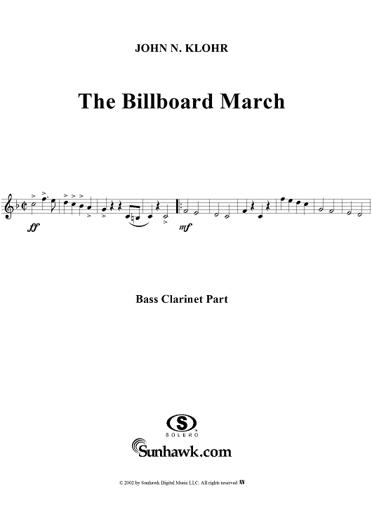 "The Billboard March - Bass Clarinet" Sheet Music by John N. Klohr