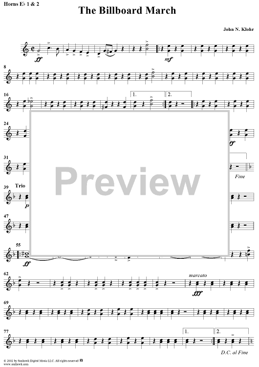 Digital Sheet Music for The Billboard March - E-flat Horns 1 & 2 by John N. Klohr scored for Concert Band; id:282663