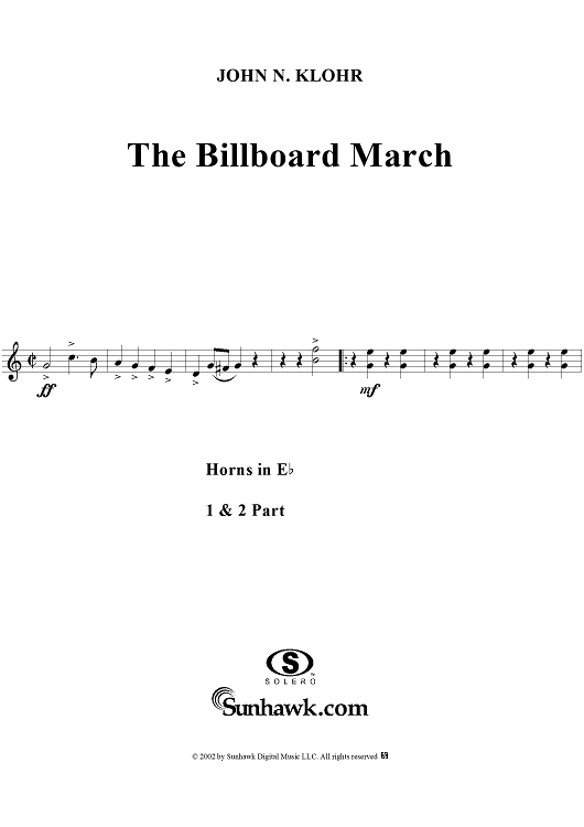 "The Billboard March - E-flat Horns 1 & 2" Sheet Music by John N. Klohr
