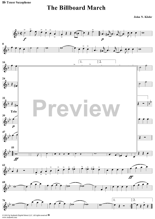 "The Billboard March - Tenor Saxophone" Sheet Music by John N. Klohr