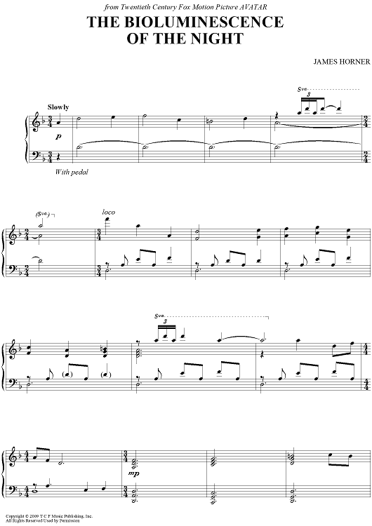 "The Bioluminescence Of The Night" Sheet Music by James Horner