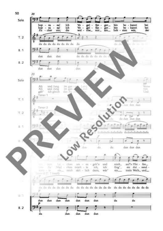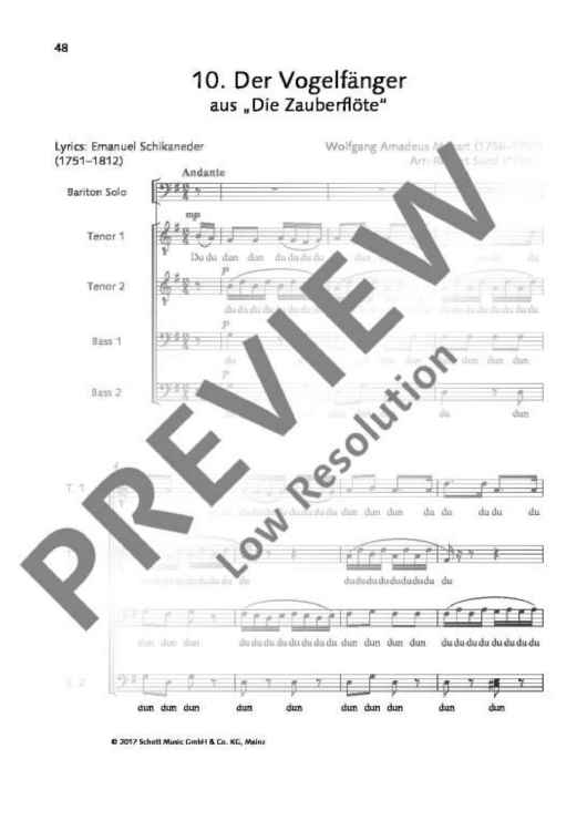 Digital Sheet Music for The Bird Catcher's Aria by Wolfgang Amadeus Mozart, Robert Sund scored for Men's Choir (bar Solo, Ttbb A Cappella); id:491958