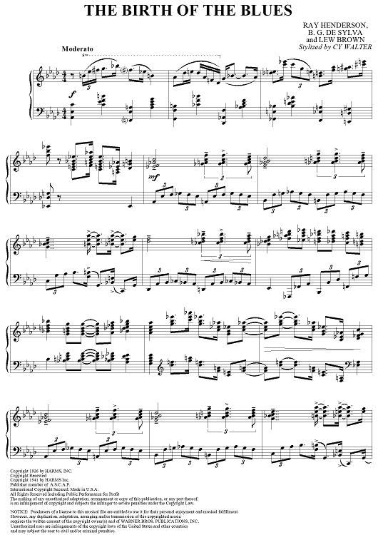 Digital Sheet Music for The Birth of the Blues by Ray Henderson, Lew Brown, Cy Walter, Buddy DeSylva scored for Piano Solo; id:315898