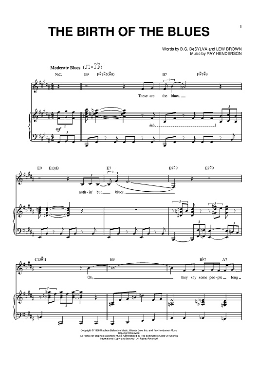 Digital Sheet Music for The Birth Of The Blues by Frank Sinatra, Ray Henderson, Lew Brown, Buddy DeSylva scored for Piano/Vocal/Chords; id:390402