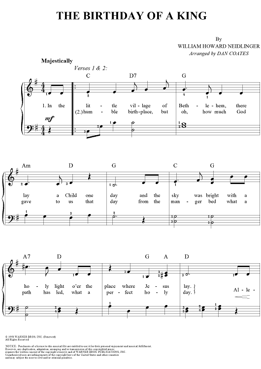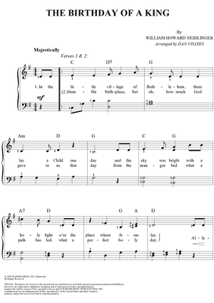 Digital Sheet Music for The Birthday of a King by Dan Coates, William Harold Neidlinger scored for Easy Piano/Vocal; id:284000