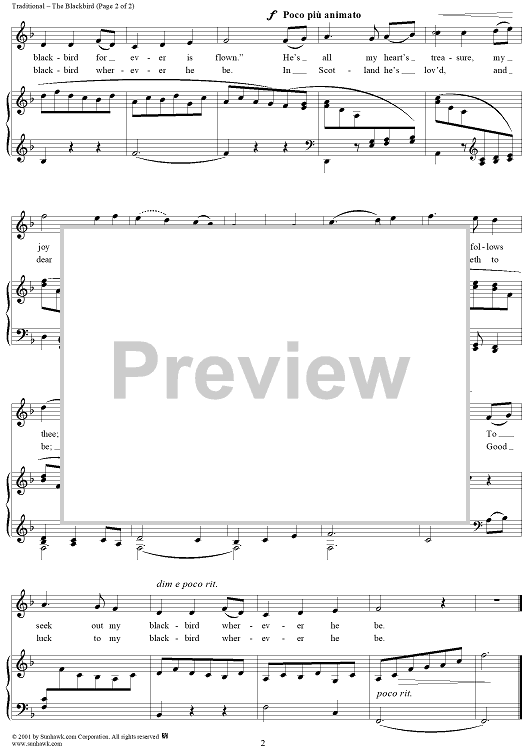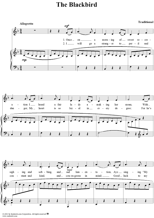 Digital Sheet Music for The Blackbird by Traditional scored for Piano/Vocal; id:258765