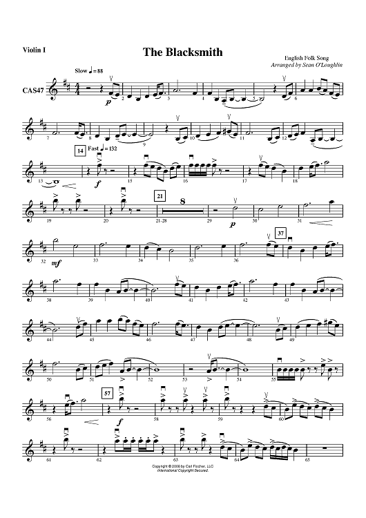Digital Sheet Music for The Blacksmith - Violin 1 by English Folk Song, Sean O'Loughlin scored for Orchestra; id:406795