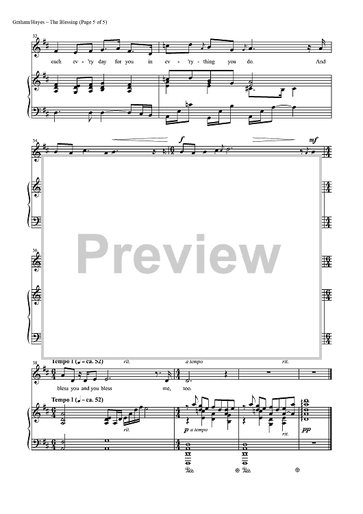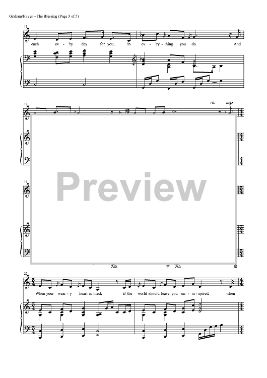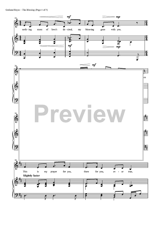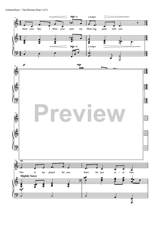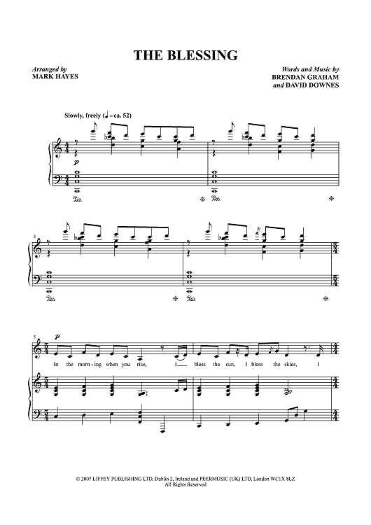 Digital Sheet Music for The Blessing by Mark Hayes, Brendan Graham, David Downes scored for Piano/Vocal; id:453482