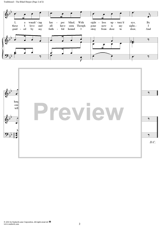 Digital Sheet Music for The Blind Harper by Traditional scored for Piano/Vocal; id:258766