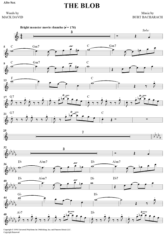Digital Sheet Music for The Blob by Burt Bacharach, Mack David scored for Eb Alto Saxophone; id:444340