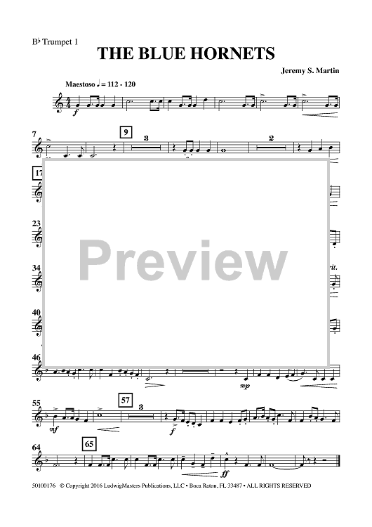Digital Sheet Music for The Blue Hornets - Bb Trumpet 1 by , Jeremy S. Martin scored for Concert Band; id:461539
