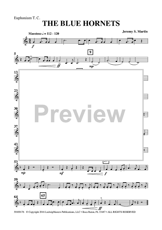 Digital Sheet Music for The Blue Hornets - Euphonium TC by , Jeremy S. Martin scored for Concert Band; id:461545