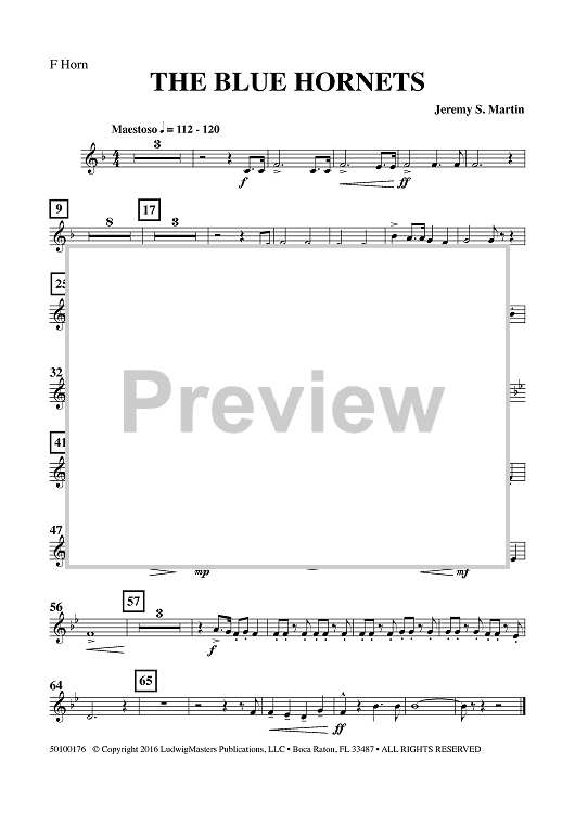 Digital Sheet Music for The Blue Hornets - Horn in F by , Jeremy S. Martin scored for Concert Band; id:461541