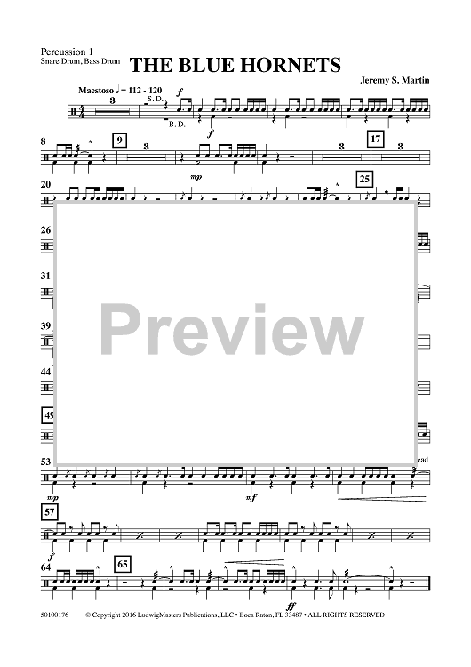 "The Blue Hornets - Percussion 1" Sheet Music by Jeremy S. Martin