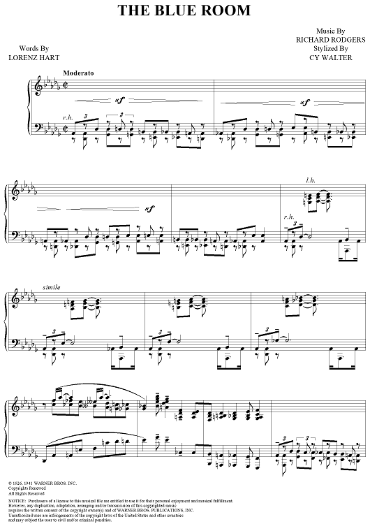 Digital Sheet Music for The Blue Room by Richard Rodgers, Lorenz Hart, Cy Walter scored for Piano Solo; id:313622