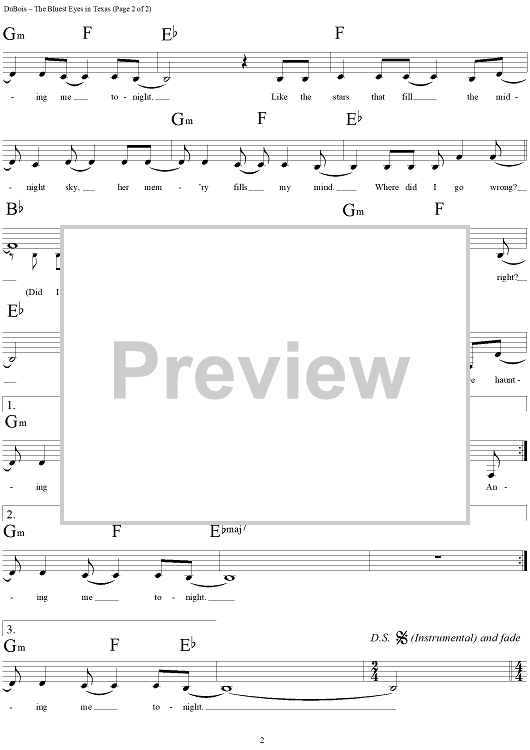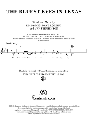 Digital Sheet Music for The Bluest Eyes in Texas by Van Stephenson, Tim Dubois, Restless Heart, Dave Robbins scored for Lead Sheet; id:120890
