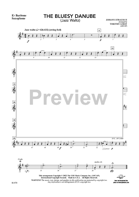 "The Bluesy Danube - Eb Baritone Sax" Sheet Music by Johann Strauss II