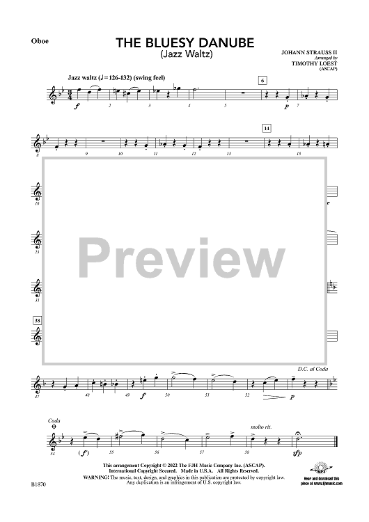 "The Bluesy Danube - Oboe" Sheet Music by Johann Strauss II