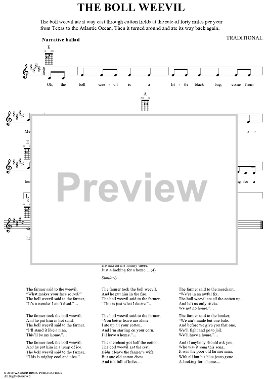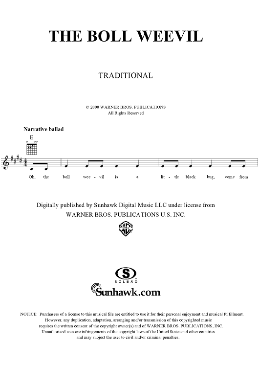 "The Boll Weevil" Sheet Music by Traditional