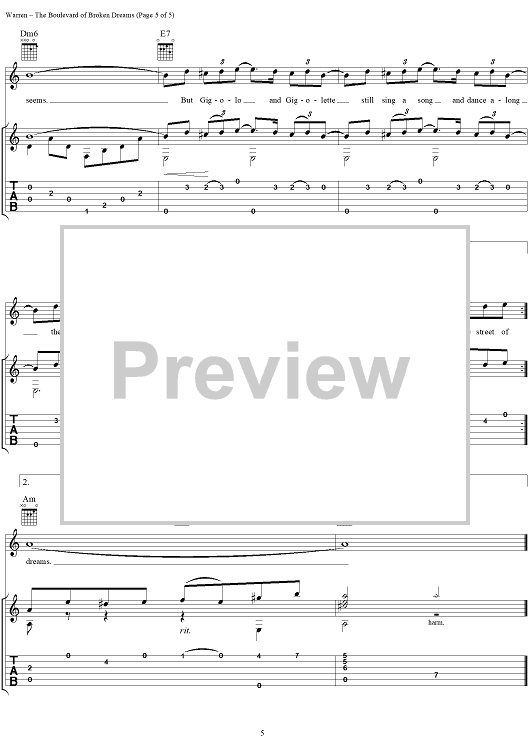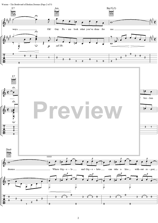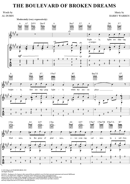 "The Boulevard of Broken Dreams" Sheet Music by Harry Warren