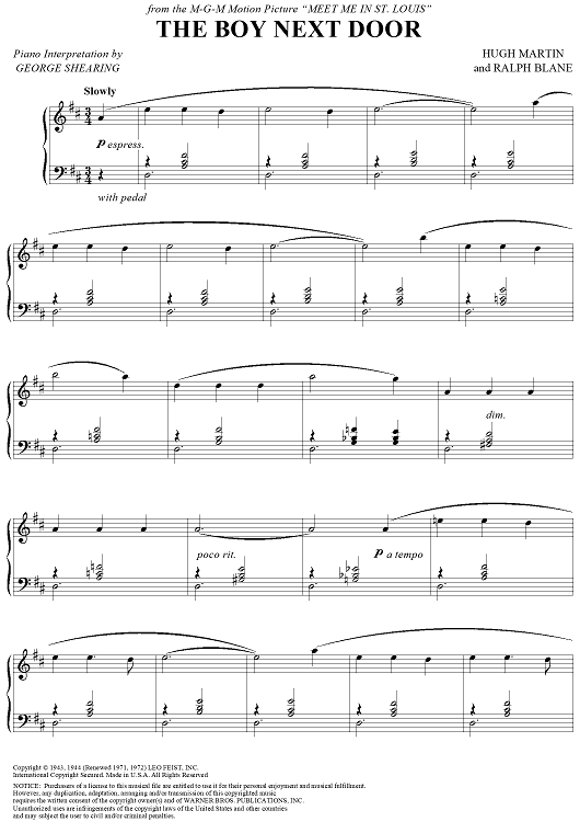 Digital Sheet Music for The Boy Next Door by Hugh Martin, George Shearing, Ralph Blane scored for Piano Solo; id:314425