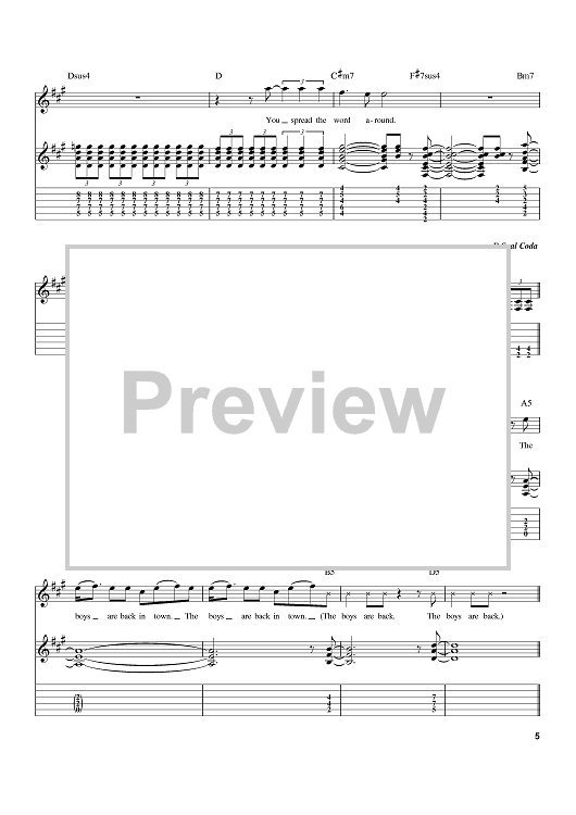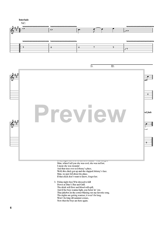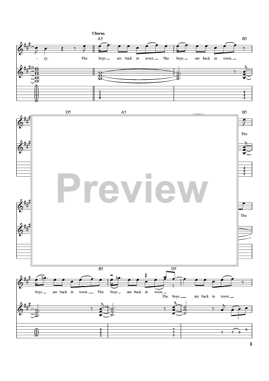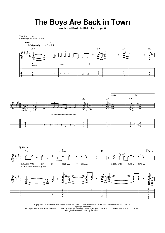 Digital Sheet Music for The Boys Are Back In Town by Thin Lizzy, Philip Parris Lynott scored for Guitar Tab; id:383749