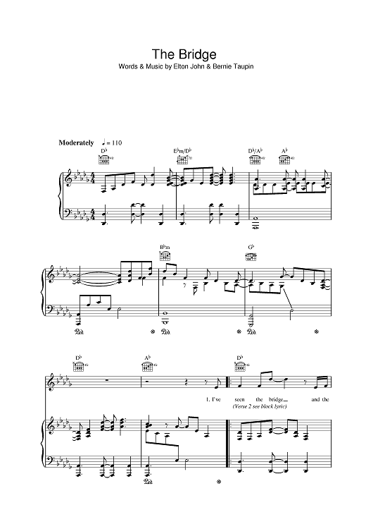 Digital Sheet Music for The Bridge by Elton John, Bernie Taupin scored for Piano/Vocal/Chords; id:393642