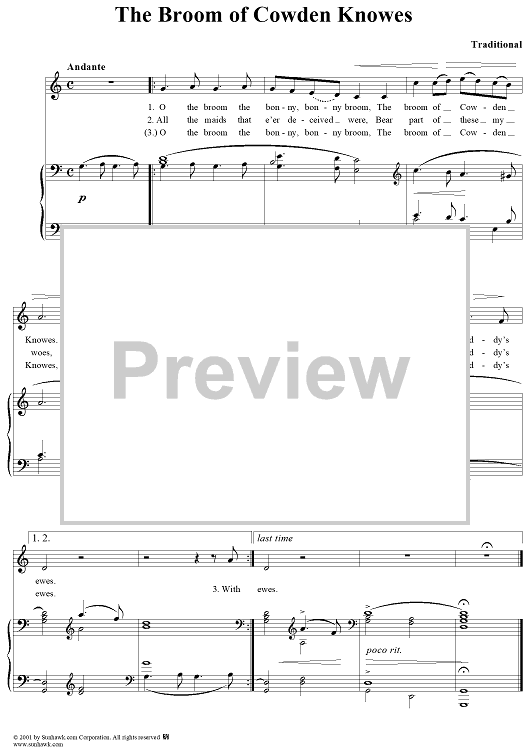 Digital Sheet Music for The Broom of Cowden Knowes by Traditional scored for Piano/Vocal; id:258767