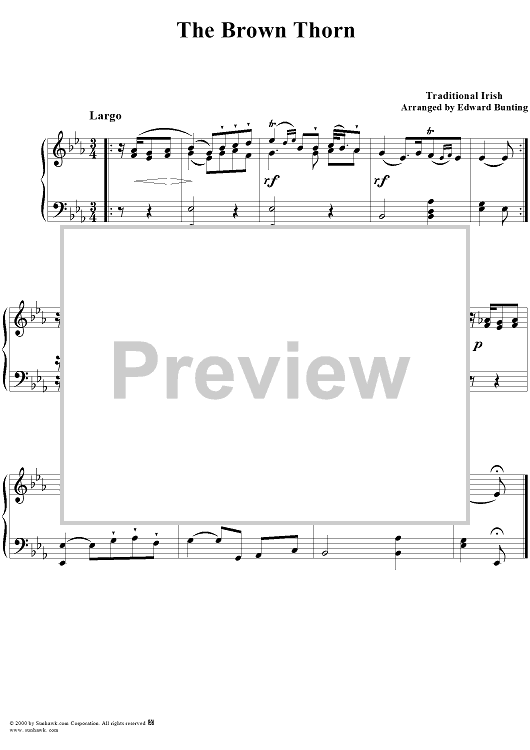 Digital Sheet Music for The Brown Thorn by , Edward Bunting, Traditional scored for Piano Solo; id:203706