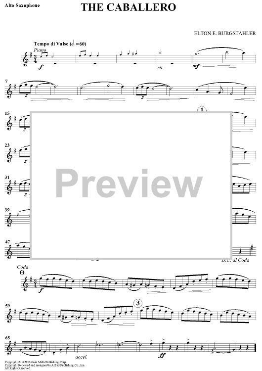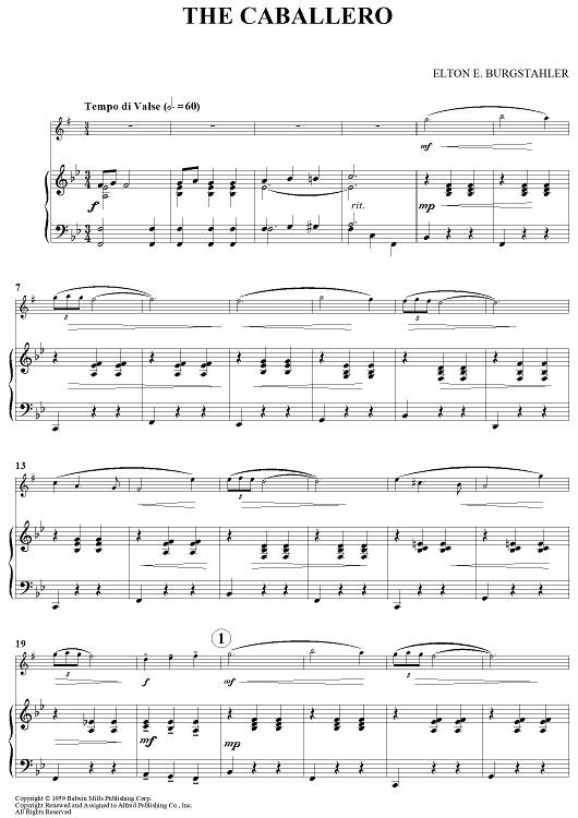 Digital Sheet Music for The Caballero by Elton E. Burgstahler scored for Eb Alto Sax/Piano; id:434617