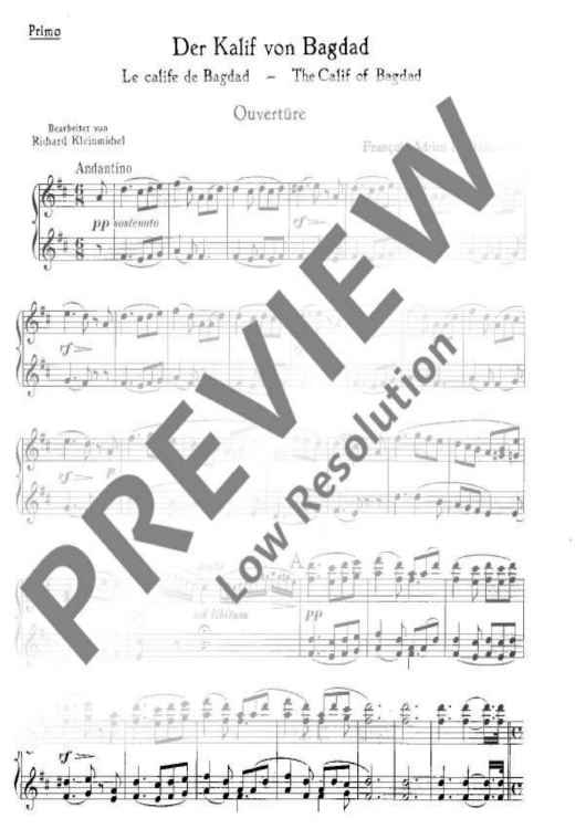 Digital Sheet Music for The Caliph of Baghdad by François-Adrien Boieldieu, Richard Kleinmichel scored for Piano (4 Hands); id:474836
