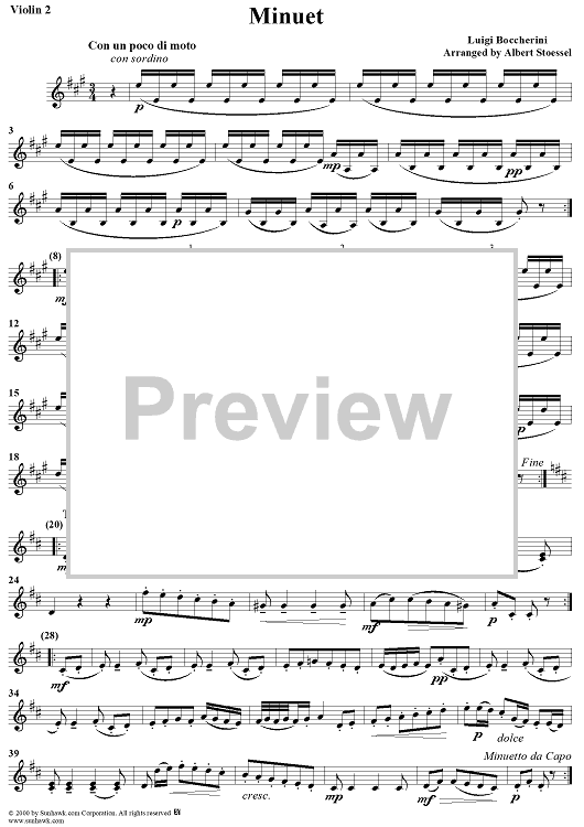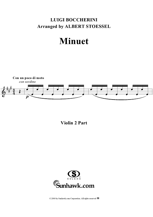 "The Celebrated Minuet - Violin 2" Sheet Music by Luigi Boccherini