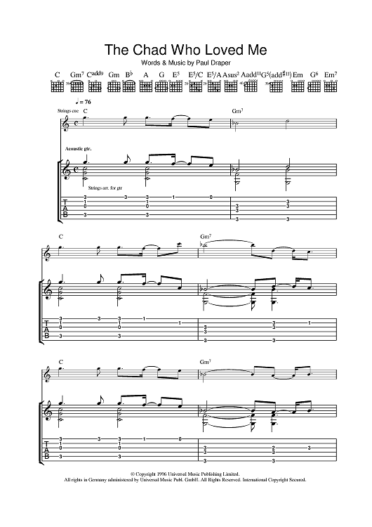 Digital Sheet Music for The Chad Who Loved Me by Paul Draper, Mansun scored for Guitar Tab; id:401335