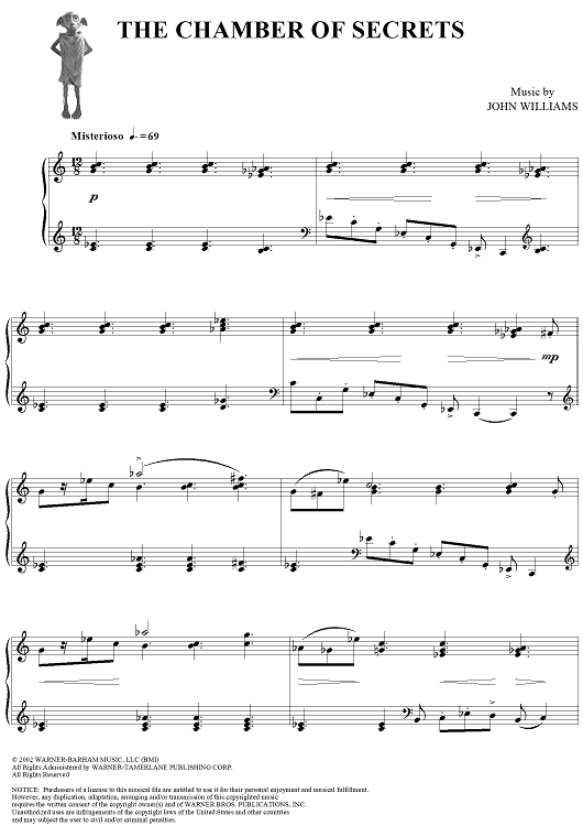 Digital Sheet Music for The Chamber of Secrets by John Williams scored for Piano Solo; id:292745