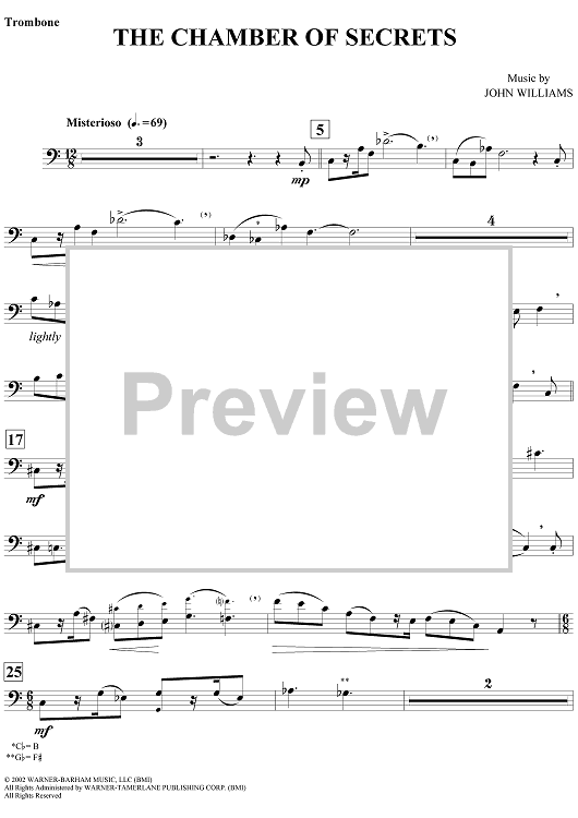 Digital Sheet Music for The Chamber of Secrets by John Williams scored for Trombone/Piano; id:317354