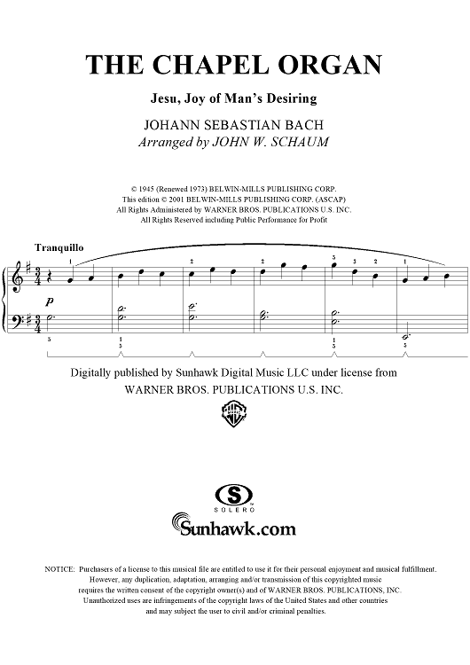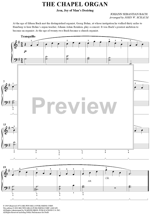 Digital Sheet Music for The Chapel Organ (Jesu, Joy of Man's Desiring) by John W. Schaum, Johann Sebastian Bach scored for Piano Solo; id:293067