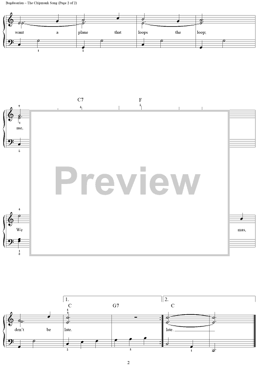 "The Chipmunk Song (Christmas, Don't Be Late)" Sheet Music by Ross Bagdasarian, Sr.